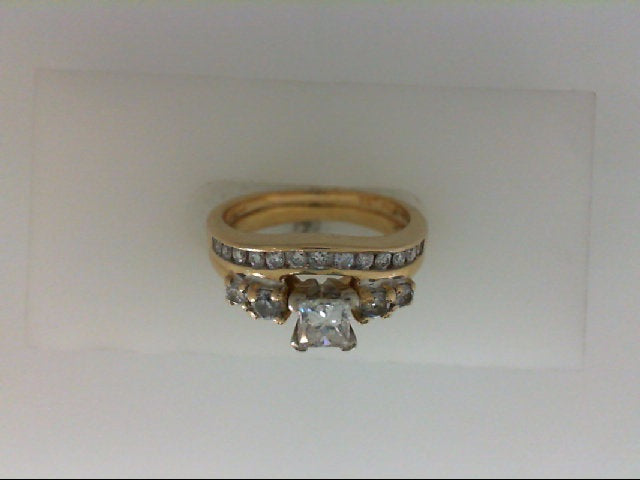 yellow gold set with larger square ring. 4 squares and 13 rounds.