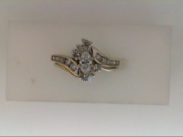 14ky engagement ring and wedding ring With One Marquise Diamond And 16= Round Diamonds