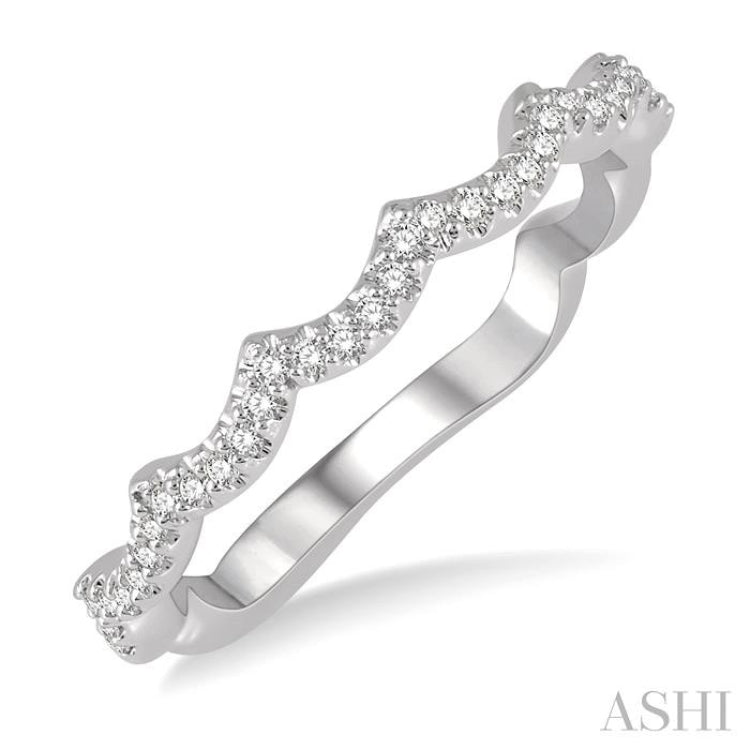 1/6 Ctw Wavy Pattern Round Cut Diamond Wedding Band in 14K White Gold